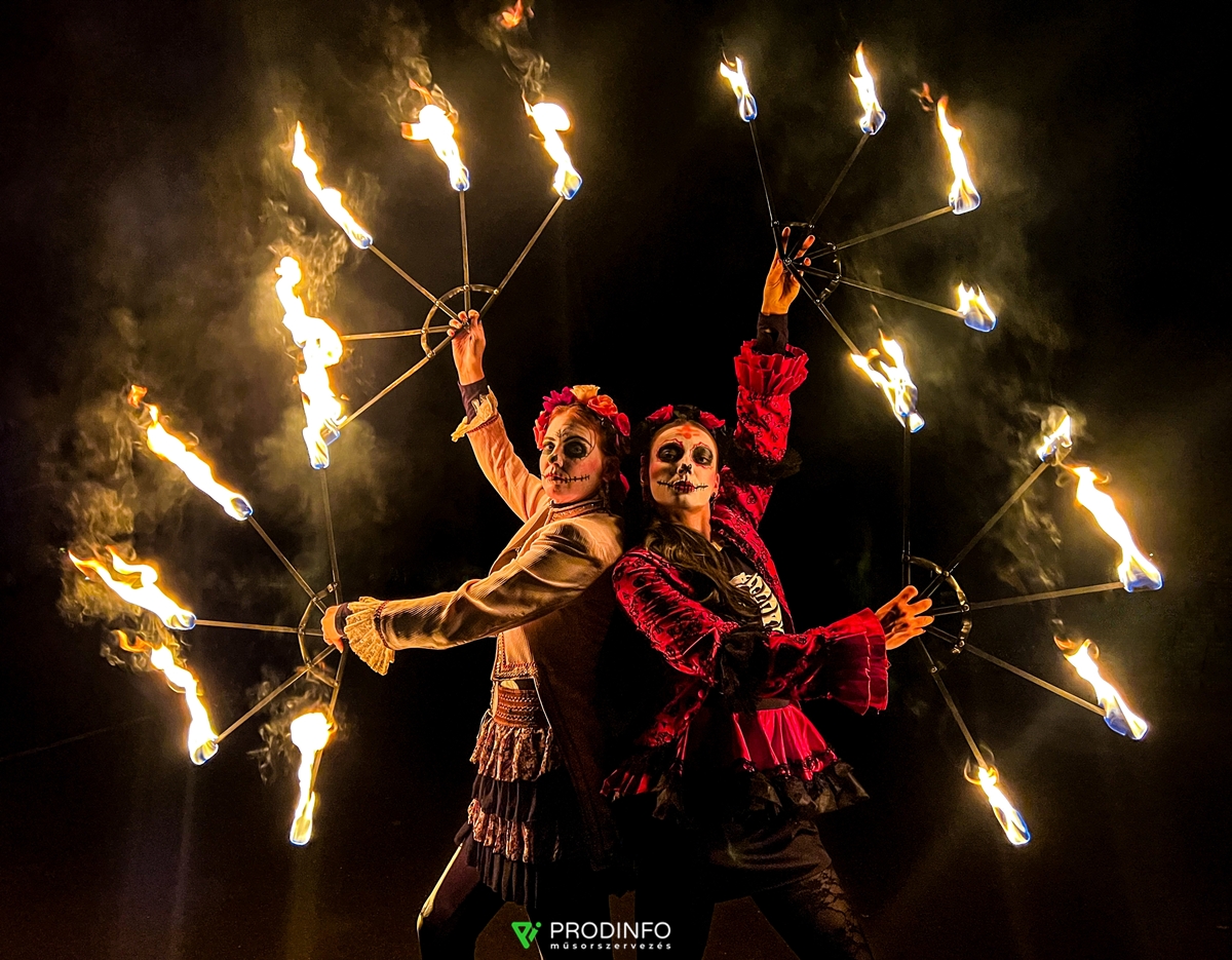 A Kócos Tűzzsonglőr Társulat egyedülálló zsonglőr és akrobatikus tűztáncos előadása során kifejezetten a Halloween formavilágára aktualizált jelmezekben és egyedi arcfestéssel mutatkoznak a mutatványosok. A különleges koreográfiákat a speciális zenei kíséret teszi felejthetetlenné…